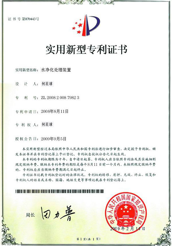 實用新型專利證書